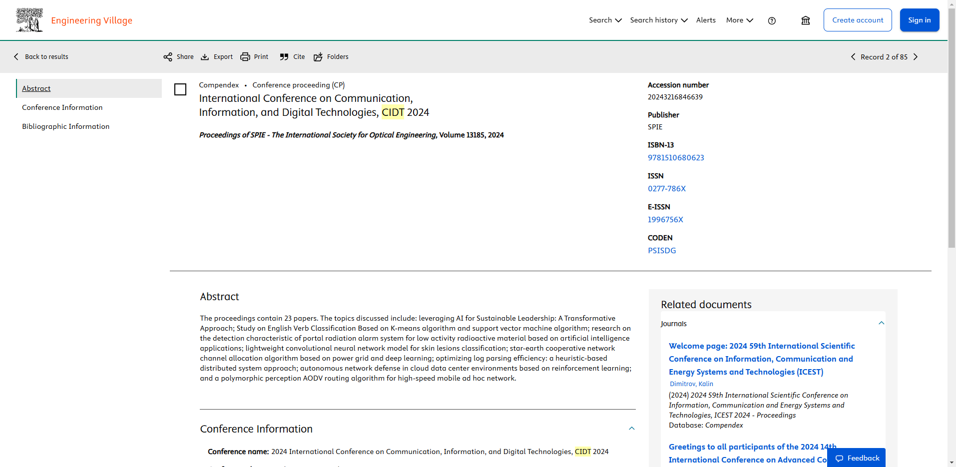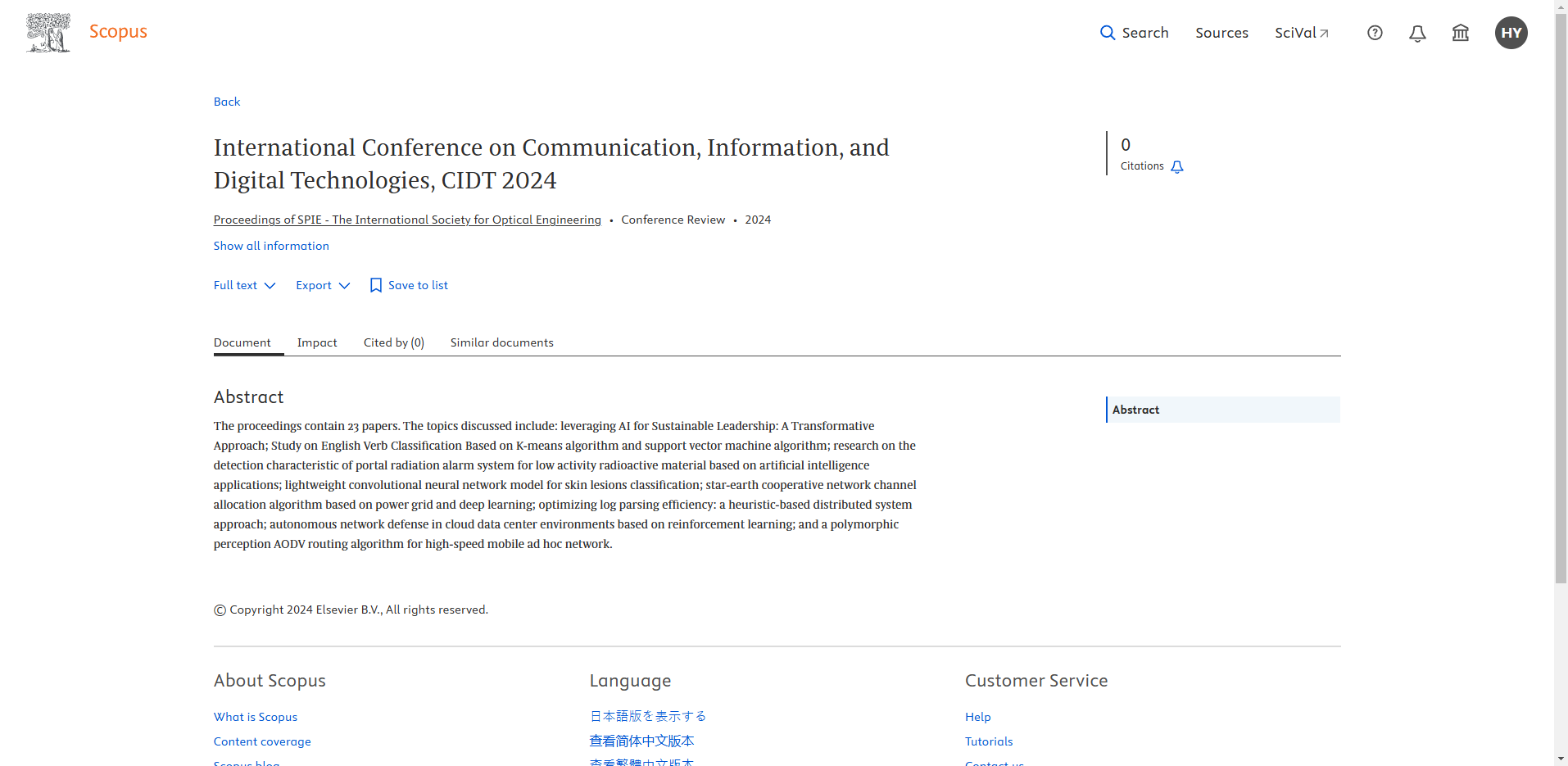 CIDT 2024 已见刊并被EI & Scopus 双检索!